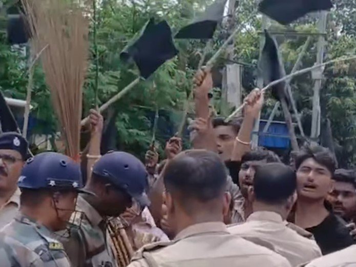বৃহস্পতিবার সকাল দশটা নাগাদ সেখানে পৌছালে প্রচুর মানুষ কালো পতাকা দেখায় এবং গো ব্যাক স্লোগান দেয়।