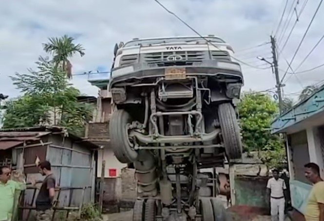 প্রত্যক্ষদর্শীরা জানান, বালি ফেলানোর সময় ডাম্পারটি আচমকা নিয়ন্ত্রণ হারিয়ে সামনের দিকে উঠে যায় এবং একটি বৈদ্যুতিক তারে আটকে পড়ে। সেই ধাক্কায় সামনের দুটি চাকা পুরোপুরি আকাশমুখী হয়ে দাঁড়িয়ে যায়। চারপাশে থাকা সাধারন মানুষ মুহূর্তের মধ্যে আতঙ্কিত হয়ে পড়েন। দুর্ঘটনার পরপরই চালক গাড়ি ফেলে সেখান থেকে পালিয়ে যায়। আওয়াজ শুনে এলাকাবাসীরা ছুটে এসে আহত ব্যক্তিকে উদ্ধার করেন এবং শিলিগুড়ির একটি বেসরকারি নার্সিংহোমে নিয়ে যান।